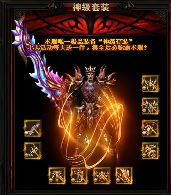 活动详情:活动截止时服务器中玩家身上神武器和神衣服的转数之和最高的玩家将获得珍宝奖励;活动截止时只要身上穿有转生武器和衣服就可以领取全民奖励。