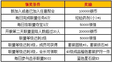 每周二,六联盟战开启,联盟达到2级即可参与,参与联盟战满足以下条件即可获得奖励。