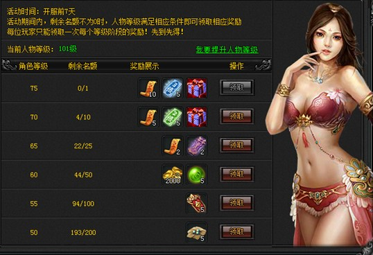 【活动内容】只要玩家达到特定的等级,就可以领取系统赠送的豪华大礼