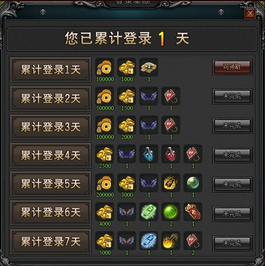 活动说明:累计登陆前七天即可领取对应登陆天数奖励,