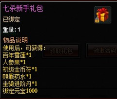 奖励内容:百年雪莲*1、人参果*1、金币符*1、赎罪药水*1、坐骑进阶丹*1、绑定元宝*1000