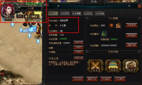 4、公会名截图(必填):无敌世界(有详细截图,包含等级自身角色),示例图片: