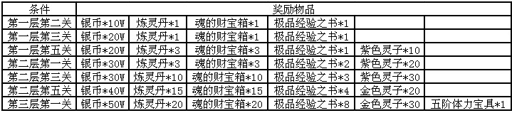 活动内容:活动期间打通相应试炼关卡即可获得奖励,奖励限制30份,不同关卡获得的活动奖励不同