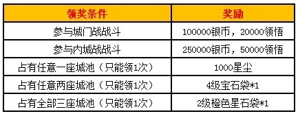 1、提升等级达到10级:50000银币、5000领悟、低级活力泉*1,时光之羽*5。