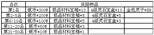 活动内容:活动截止日期24点整等级排行前50名玩家可获得丰厚奖励
