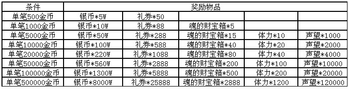 活动内容:活动期间内玩家单笔充值达到相应额度即可获得额外奖励