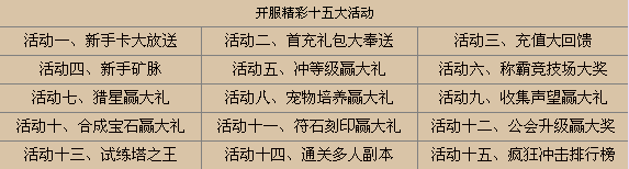 【活动时间】:开服第1天——第15天(奖励领取时间截止至20天)