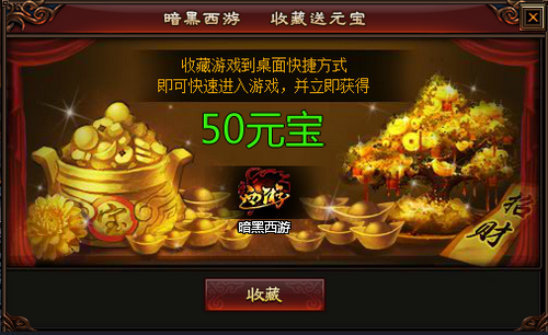 活动内容:点击游戏界面的“收藏游戏”图标,一秒钟收藏游戏,同时可获赠50元宝奖励。