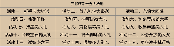 【活动时间】:开服第1天——第15天(奖励领取时间截止至20天)