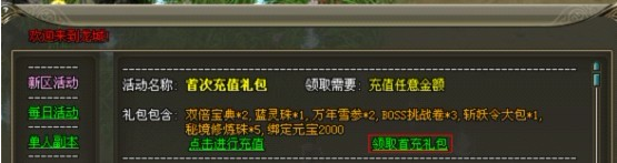 活动一:首次充值送超值礼包