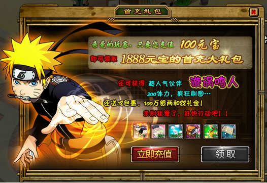 • 忍者疾风传精彩开服活动 首冲礼包等你领