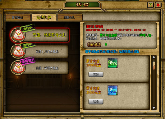 活动结束时,累计充值满10000元宝:200000声望