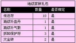 3、家族排行榜第一位即每位家族成员得到“天级家族礼包”*1;
