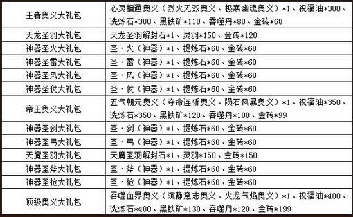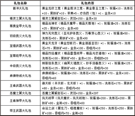 活动内容:累计充值达到要求即可领取礼包,极品橙色装备、霸气奥义技能,充的越多送的越多。让PK更加激情、绚丽!