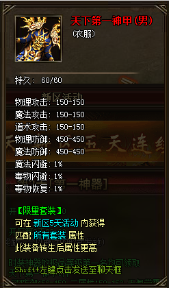 神器时装第1名奖励:天下第一神甲