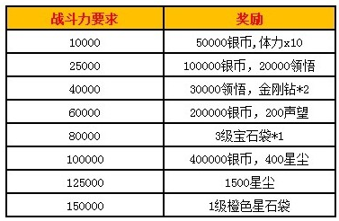 活动期间,单笔充值5000金币可获得:1500000银币、150000领悟、20体力、3级宝石袋*1