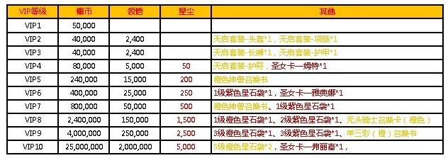 6、提升等级达到40级:500000银币、四级天启令*20、一级资质药剂*30、铭文卡片*5。
