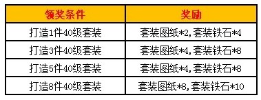 活动期间,打造指定件数的40级套装即可获得奖励。
