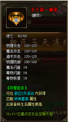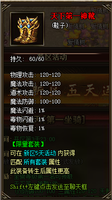 全民参与奖励:神器时装的极品等级达到10级以上的玩家可领取初级兽魂石200颗(用于提升坐骑)、鉴宝镜1枚。