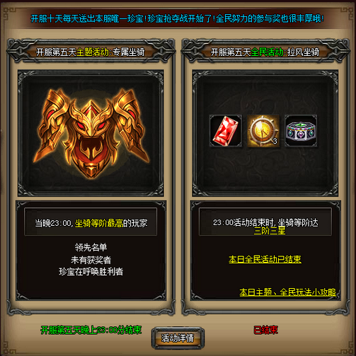 活动时间:开服第五天23:00截止