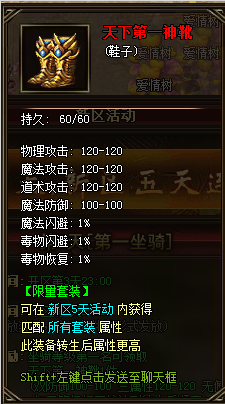 坐骑第1名奖励:天下第一神靴