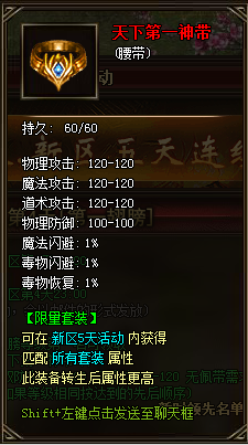 第2天:第一神器;神器时装极品等级竞争。