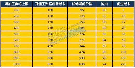 注:爆击所得饭卡小数点部分向下取整,获赠饭卡部分不参与其他充值活动累积