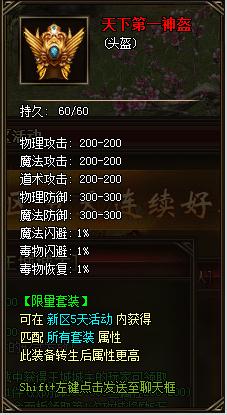 全民参与奖励:神器时装的极品等级达到10级以上的玩家可领取初级兽魂石200颗(用于提升坐骑)、鉴宝镜1枚。