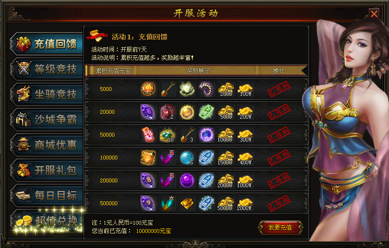 活动说明:累计充值达到一定数量即可获取至尊奖励