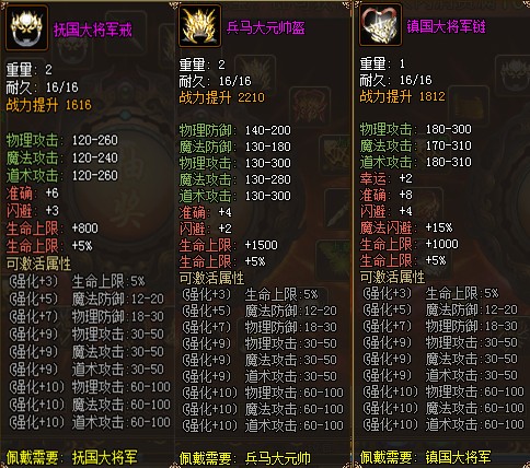 【奖励内容】 有机会获得抚国大将军戒、镇国大将军链、兵马大元帅盔、十级宝石等极品道具。