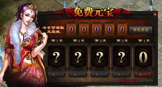 活动内容:登录第1、2、3、5、7天免费赚元宝,只要人品够给力,领取99999元宝不是梦,小伙伴们带上人品赶紧行动起来吧。