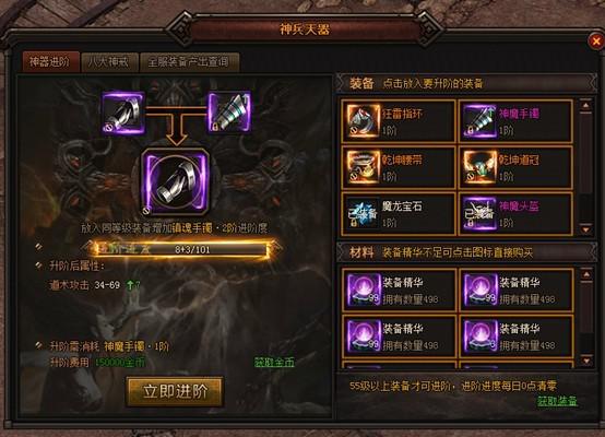进度值满,装备就可以进阶成功了,成功后,装备的属性将会有较大幅度的提升。如果装备不够的话,可以使用装备精华提升进阶进度值
