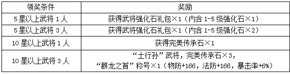 活动内容:在活动期间玩家将一定数量的武将培养到相应的星级可以获得丰厚的奖励,并有机会获得绝版武将--土行孙