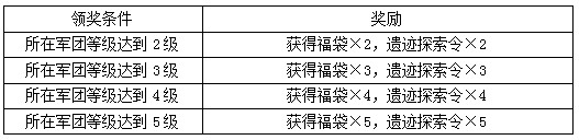 活动内容:在活动期间,玩家所在军团达到特定等级将可以获得丰厚的奖励。
