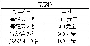 活动内容:在活动期间各个排行榜名列前茅的玩家将可以获得丰厚的奖励。