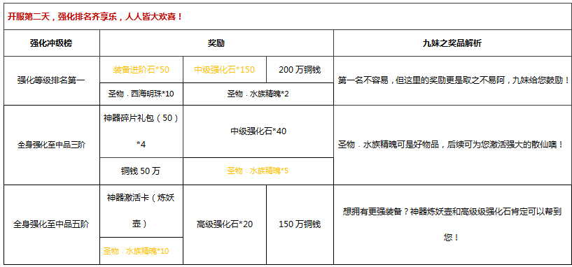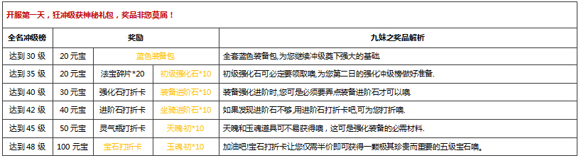 【活动内容】开服七天内,九妹仅需要您达到以下等级要求,即可获得大量道具及礼包噢!