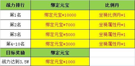 活动奖励:新服开服前7天战力排名可获得排名奖励,完成战力目标可获得达标奖励