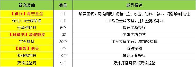 活动奖励:首次充值任意元宝,即可获赠超值首充奖励!