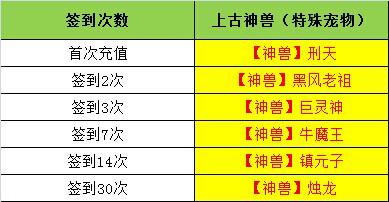 活动奖励:累计签到可获得特殊宠物“上古神兽”