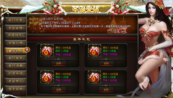 【活动内容】:活动期间,总共有4个系列的礼包,每个系列包含5重礼包,分别需要消耗1、888、4888、8888、18888元宝购买。使用礼包可获得大量道具,礼包超低折扣价!