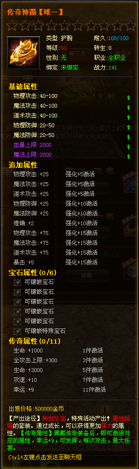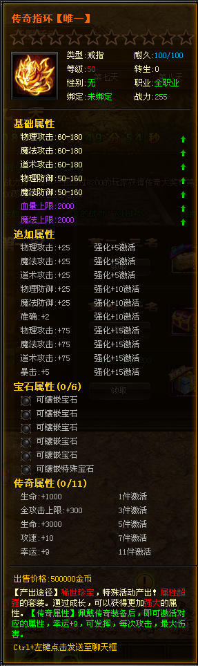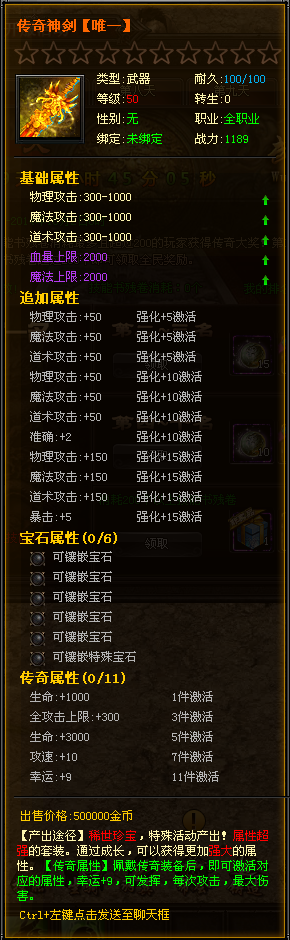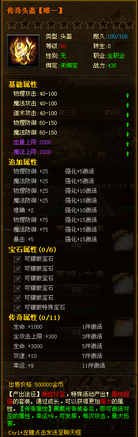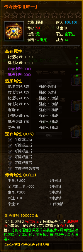1.强化排行第一且强化次数超过500次的玩家获得传奇奖励