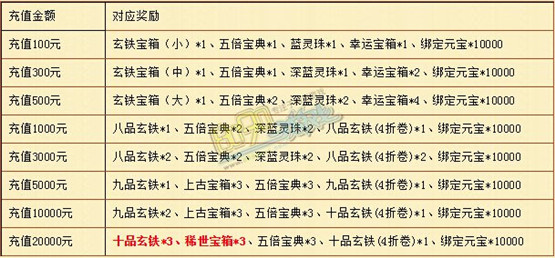活动时间单服累计充值第一,可以获得“十品玄铁*2”(需满足3000元以上的充值条件);