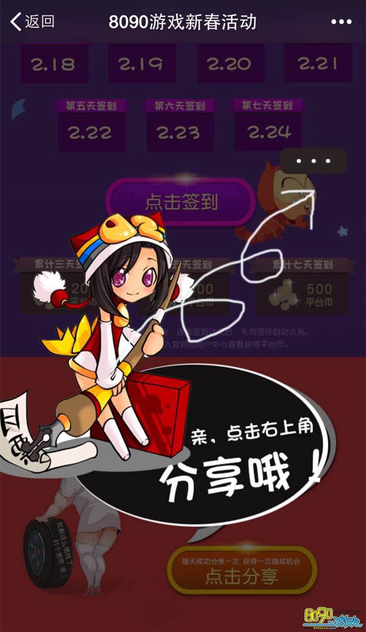 关注后点击“绑定有礼”!通过微信平台绑定您的平台账号,即可获得抽奖机会!iphone6、8090平台币、8090新春游戏周边集锦、游戏独家礼包码等你来拿!