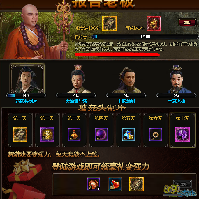 活动十一:报告老板恭贺开服