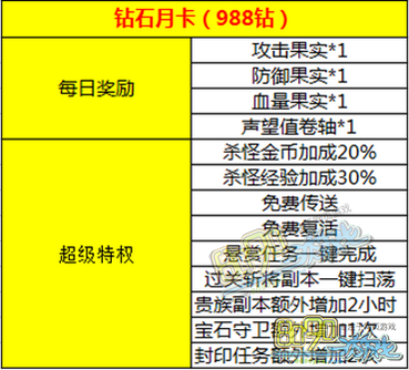 活动内容:开服期间,神之奇迹为各位理财达人准备了黄金月卡和钻石月卡,可以同时拥有。小投入大收货,高达12倍返利,每月为您节省10000钻石,投资回报率爆炸。