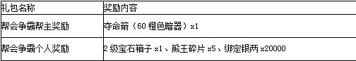 注:活动在开服第7天晚24点结束并发放奖励,此时在帮会内的成员可以领到奖励,之后再进帮的成员无法获得奖励。