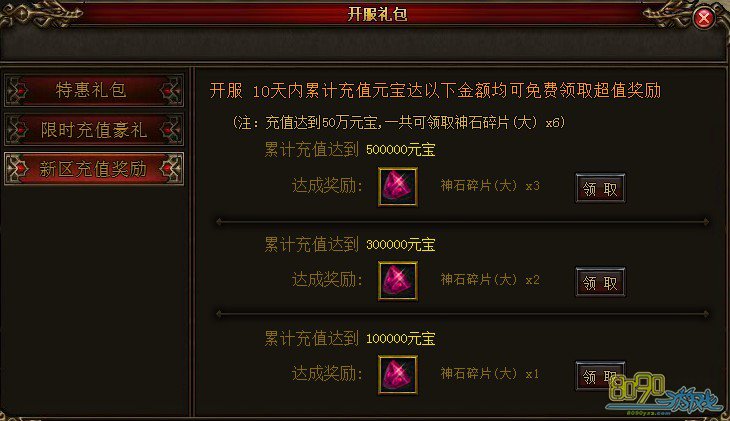 累计充值10W元宝:神石碎片(大)x1