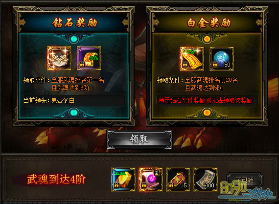 活动内容:活动期间,武魂排名前20的玩家并达到活动要求可获得丰厚奖励;武魂等级达到4阶的所有玩家均可领取丰厚奖励。