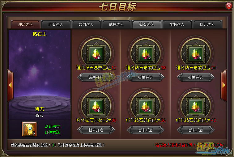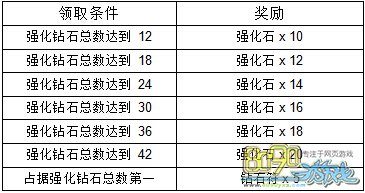 活动期间,玩家达到相应强化钻石总数,即可领取对应数量 强化石 。活动结束时,占据强化钻石总数第一的玩家更有机会获得 钻石符 哦。