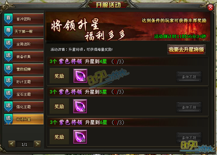 将领升星,福利多多。活动期间,武将升星达到相应要求,将会获得对应的奖励哦!
